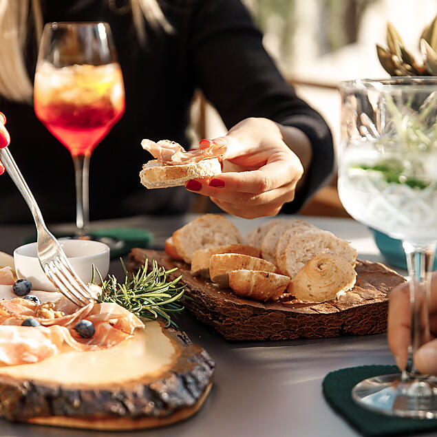 Von 18.00 bis 24.00 Uhr laden wir Sie auf unsere Panoramaterrasse und in unsere Bar ein, wo Sie sich in entspannter Atmosphäre mit vorzüglichen Aperitifs und Getränken verwöhnen lassen können.