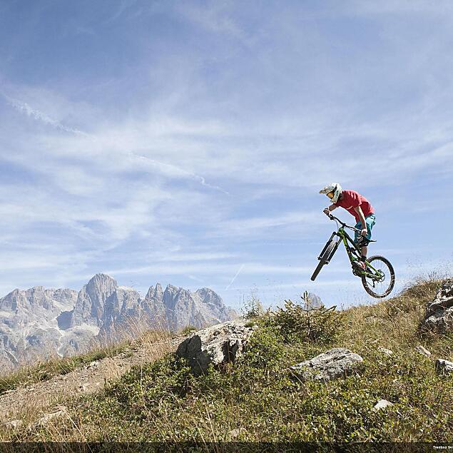 From Hotel Letizia, bike hotel in Trentino, you can set out to discover the beauty of the region on two wheels. While tackling sloping meadows, forests and high plateaus, enjoying the enchanting views of the Dolomites, it will not be unusual to be rewarded with fleeting encounters with roe deer, squirrels and chamois. The MTB trails around our bike hotel in the Dolomites, in the Primiero and Vanoi valleys, are a biker's paradise!