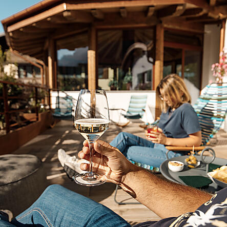After dinner, we recommend our bar, a spacious and elegant place where you can experience special evenings. Local wood, elegant designer furniture and careful lighting, all contribute to a harmonious ambiance with a relaxing, welcoming and unique atmosphere. The perfect place to enjoy fine spirits, Trentino grappas, gins, delicious cocktails, craft beers and exceptional wines.