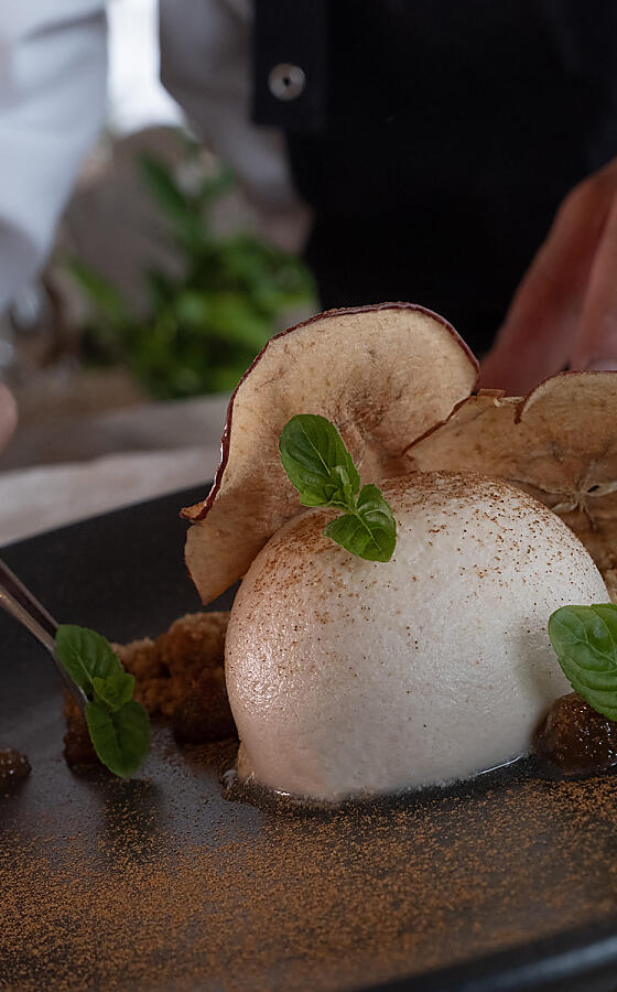 Taste and presentation, genuine refinement and modern ideas come together in a perfect marriage. We use fresh, local produce to create innovative dishes that entice with their lightness. Enjoy them with a great wine from our cellar for a unique culinary experience in a natural setting that will take your breath away!