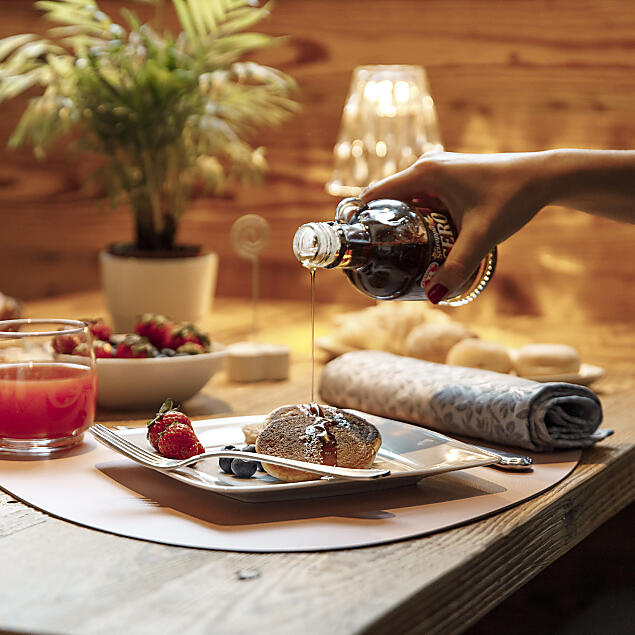 For us, it is important to be able to share our love for our land with our guests, even at the table. In the morning, you can get your day off to a good start with a hearty mountaineer's breakfast from a buffet that also includes an organic and vitality selection