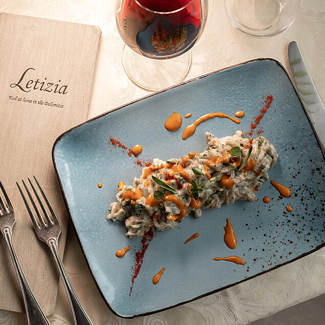 The cuisine of our restaurant in the Dolomites is always a hit with all our guests! The light and tasty gourmet dishes prepared by our chefs make for a perfect Italian half board holiday. Carefully chosen ingredients and the skills of our staff make the flavours of the mountains and the traditional Trentino dishes even more surprising.