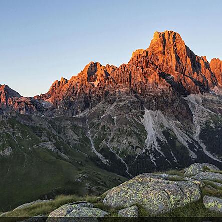 Dominano incontrastate, maestose ed eleganti. Ovunque si giri lo sguardo, eccole, a toccare il cielo alcune sfiorando, altre superando i tremila metri di altezza. Sono le cime che formano le Pale di San Martino, il più esteso gruppo montuoso delle Dolomiti. Le celebri montagne, dal Cimon della Pala alla Vezzana, dalla Rosetta alla Pala, dal Sass Maor alla Madonna, via via passando per la Cima Canali fino ad arrivare alla liscia parete dell’Agnèr, formano una corona circolare che delimita un vasto altopiano di circa cinquanta chilometri quadrati di pura roccia calcarea, puntellata qua e là da potentille, raponzoli, papaveri gialli, sassifraghe, genziane e stelle alpine. Da Passo Rolle a San Martino di Castrozza, dai paesi di Primiero alla Val Canali, passando per Sagron Mis, risalendo il Valles e ricongiungendosi sul valico di Rolle, eccole, a delimitare Primiero e Agordino. Si ammirano anche dal Vanoi, e fanno da sfondo ideale al lago di Calaita.