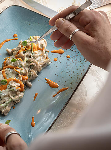 Gusto ed estetica, raffinatezza genuina e idee moderne si fondono per formare un connubio perfetto. Usiamo ingredienti freschi e locali per creare piatti innovativi che seducono per la loro leggerezza. Accompagnali con uno squisito vino della nostra cantina e proverai un piacere culinario unico, di fronte ad uno scenario naturale che toglie il fiato!